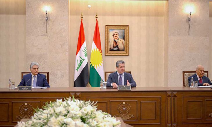 جاء ذلك في اجتماعها الأسبوعي الأخير الذي انعقد برئاسة مسرور بارزاني، حيث ناقشت آخر التطورات المتعلقة بمسألة استئناف تصدير النفط، وملف الإيرادات غير النفطية، والمعاشات والمستحقات المالية، وآليات وإجراءات تنفيذ التزامات كل من الحكومة الاتحادية وحكومة إقليم كردستان، استناداً إلى قرارات مجلسي الوزراء في الجانبين، والتفاهم المشترك الذي صادق عليه الطرفان.