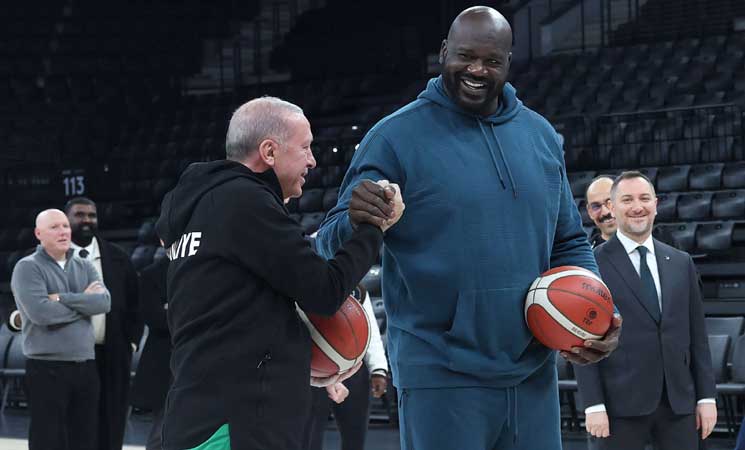 إسطنبول: لعب الرئيس التركي رجب طيب أردوغان، كرة السلة مع النجم السابق في الدوري الأمريكي للمحترفين شاكيل أونيل.