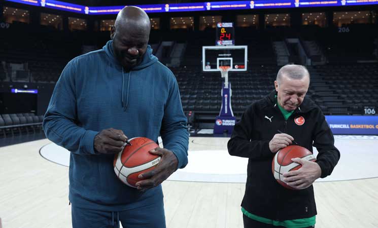 وعقب الانتهاء، وقع الرئيس أردوغان والنجم أونيل على الكرات التي لعبوا بها، والتقطا صورا تذكارية مع الرياضيين الشباب.