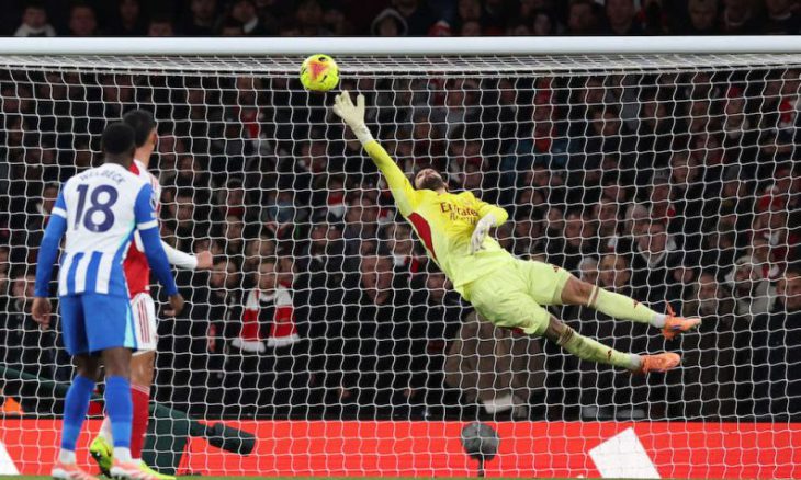 وعلى ملعب الإمارات تقمص بارت فيربروخن، حارس مرمى برايتون، دور البطولة بإنقاذ مرماه من فرصتين خطيرتين في أول أربع دقائق لنجمي آرسنال، فيكتور جيوكيريس وبوكايو ساكا.