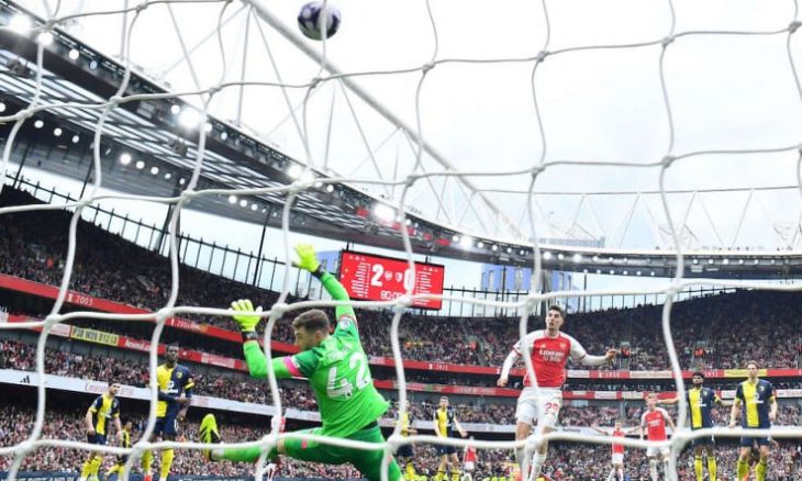 على ملعب الإمارات، بدا منذ لحظات المباراة الأولى أنّ رجال المدرب الإسباني ميكل أرتيتا مصممون على تفادي أي دعسة ناقصة في الأمتار الاخيرة من الموسم. وبالفعل، هيمنوا وكانت لهم 14 تسديدة منها 4 مباشرة على المرمى في الشوط الأول.