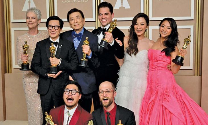 صورة لطاقم فيلم «كل شيء في كل مكان في وقت واحد» في حفل توزيع جوائز الأوسكار