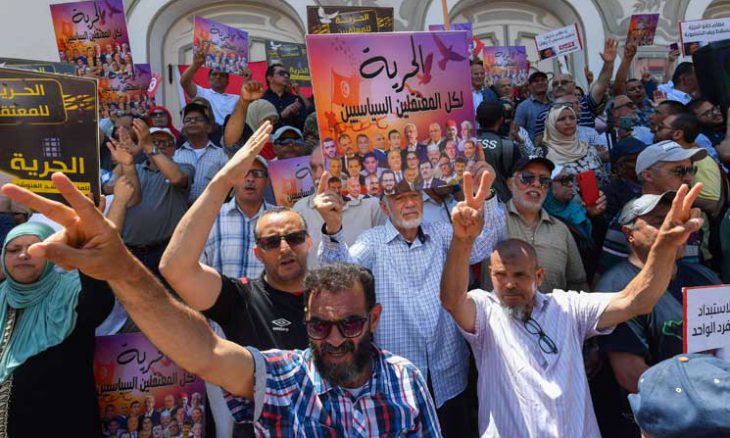 وشنّت السلطات حملة اعتقالات واسعة استهدفت العديد من المعارضين السياسيين بمن فيهم قياديون من الصف الأول في حزب النهضة منذ شباط/ فبراير الماضي.