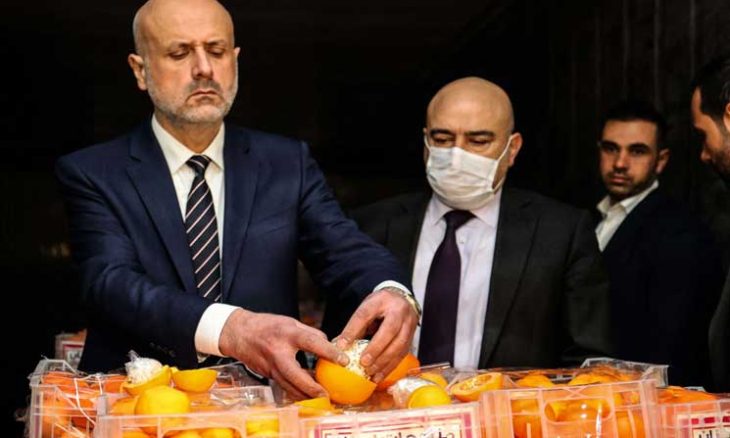 وزير الداخلية اللبناني بسام مولوي يتفقد شحنة البرتقال المليء بالكبتاغون
