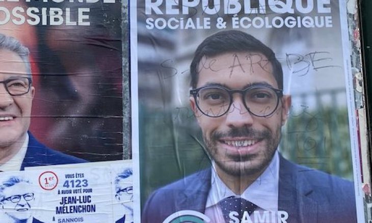 باريس-“القدس العربي”: تعرض ملصق خاص بحملة مرشح شاب عن الحزب الاشتراكي الفرنسي للانتخابات التشريعية المقبلة، من أصول عربية، للتشويه بعبارة عنصرية، لاقت استنكار السكرتير الأول للحزب أوليفييه فور.