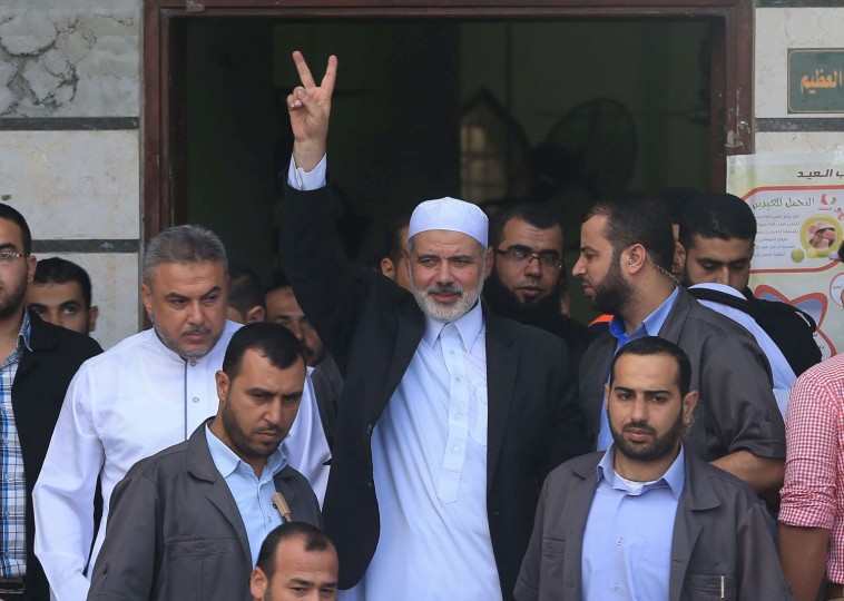 هنية يرفع إشارة النصر في مدينة غزة عام 2015