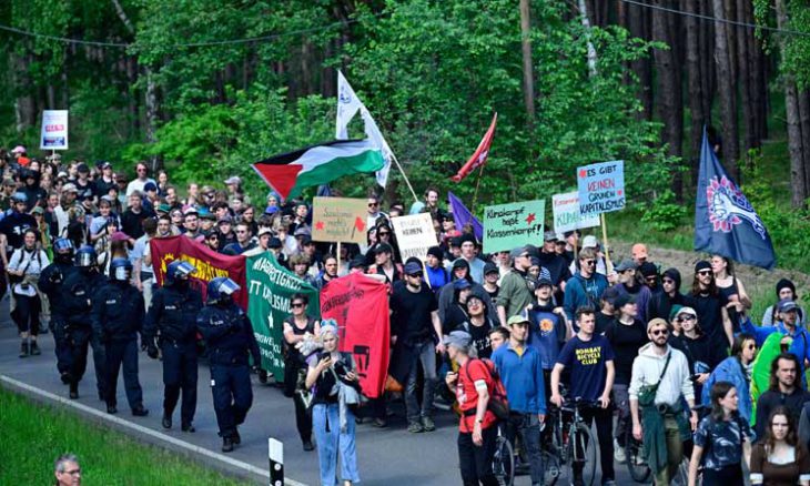 وخلال المظاهرة التي جابت منطقتي نويكولن وكرويتسبرغ في برلين ووصل عدد المشاركين فيها إلى 1500 شخص، تم ترديد شعارات مؤيدة للفلسطينيين. وذكرت الشرطة أنه تم ترديد عبارة معادية للسامية عبر أحد مكبرات الصوت المحمولة على عربات.