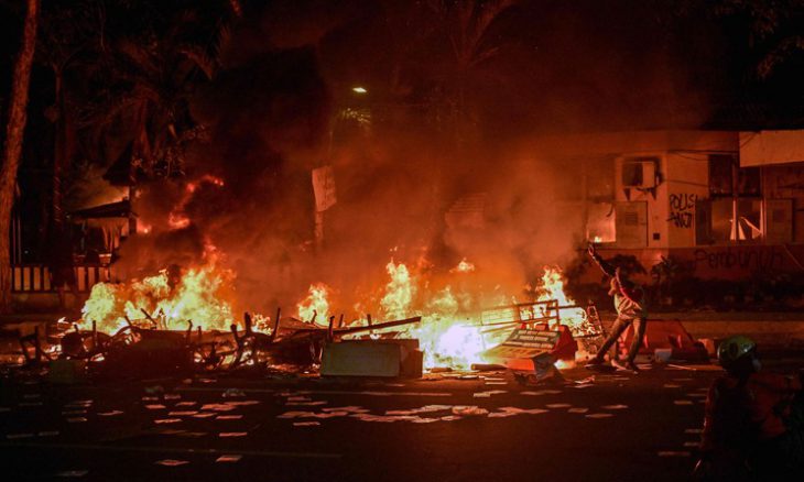 وبدأت الاحتجاجات الإثنين الماضي بشكل سلمي، وطاولت مدنا رئيسية في إندونيسيا بما فيها العاصمة، بعد انتشار فيديو يظهر مركبة للشرطة تصدم دراجة نارية أجرة في جاكرتا وتدهس سائقها الشاب خلال تظاهرات نظمت للاحتجاج على الأجور المنخفضة والمخصّصات التي تقدّم للمسؤولين.