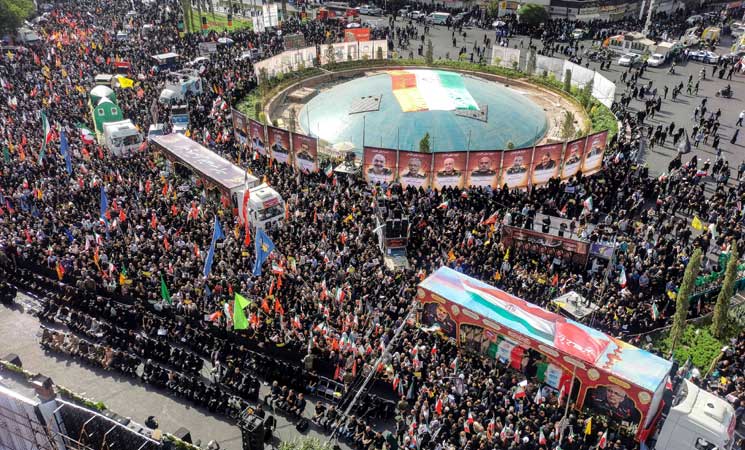 ومع انطلاق التشييع في الساعة الثامنة (4,30 ت غ)، أعلن التلفزيون الرسمي “بدأت رسميا مراسم تكريم الشهداء”، عارضا مشاهد لحشود تجمعت في وسط طهران.