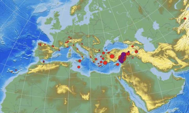 وأوضح أن أكبر الزلازل تتركز في إيران وتركيا والقوقاز وأن هذه الزلازل ناتجة عن تصادم الصفيحة العربية وحركتها نحو الشمال مع الصفيحة الأورازية على امتداد مناطق التماس بين تلك الصفائح.