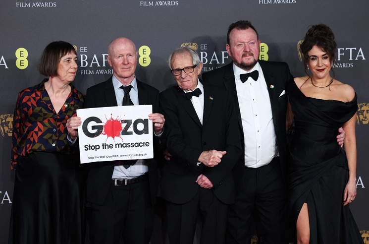 ريبيكا أوبراين، بول لافيرتي، كين لوتش بحفل جوائز الأكاديمية البريطانية للسينما والتلفزيون (بافتا) لعام 2024. رويترز