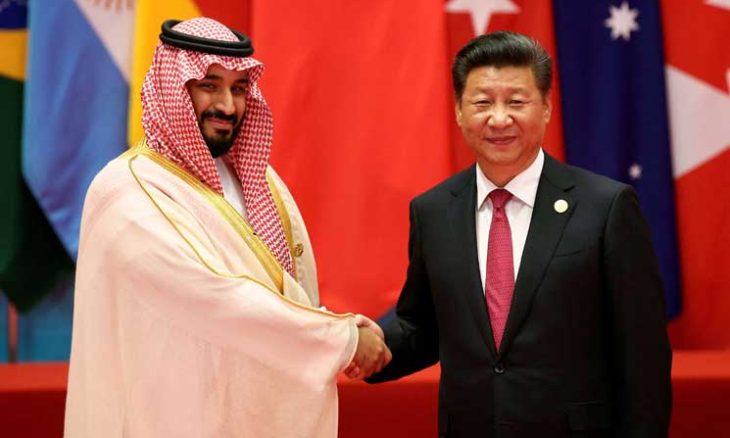 الرئيس الصيني يصافح ولي العهد السعودي خلال لقاء سابق