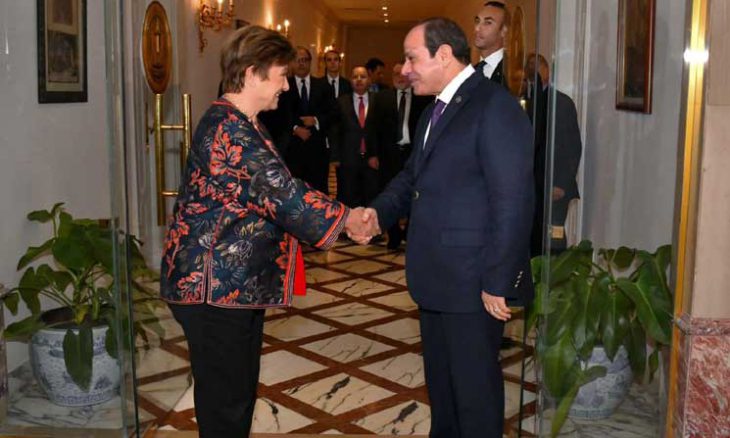 جاء ذلك خلال استقبال السيسي، كريستالينا جورجييفا مدير عام صندوق النقد الدولي والوفد المرافق لها، بحضور مصطفى مدبولي، رئيس الوزراء المصري، وحسن عبد الله، محافظ البنك المركزي المصري، ورانيا المشاط، وزيرة التخطيط والتنمية الاقتصادية والتعاون الدولي، وأحمد كوجك، وزير المالية.