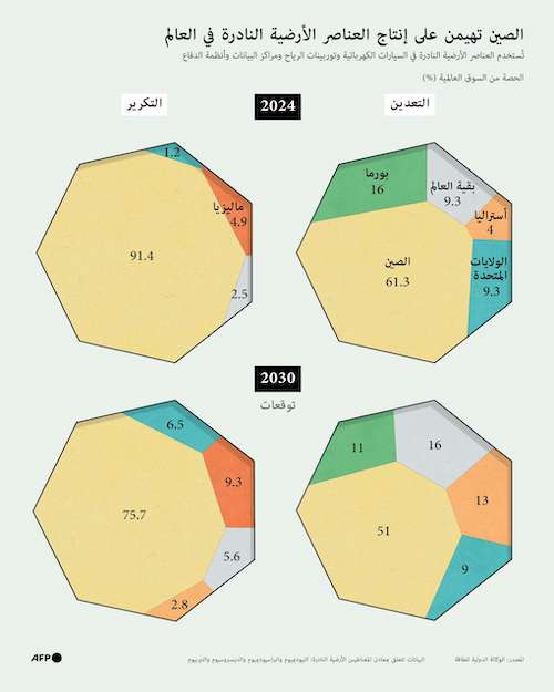 الصين تهيمن على إنتاج العناصر الأرضية النادرة في العالم