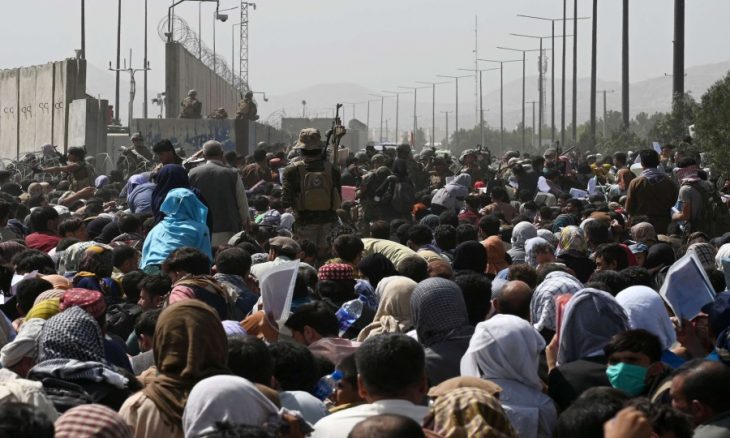والظروف خارج مطار حامد كرزاي الدولي فوضوية مع ورود تقارير عن تعرض أشخاص يسعون إلى المغادرة للضرب بأيدي مسلّحين من طالبان.