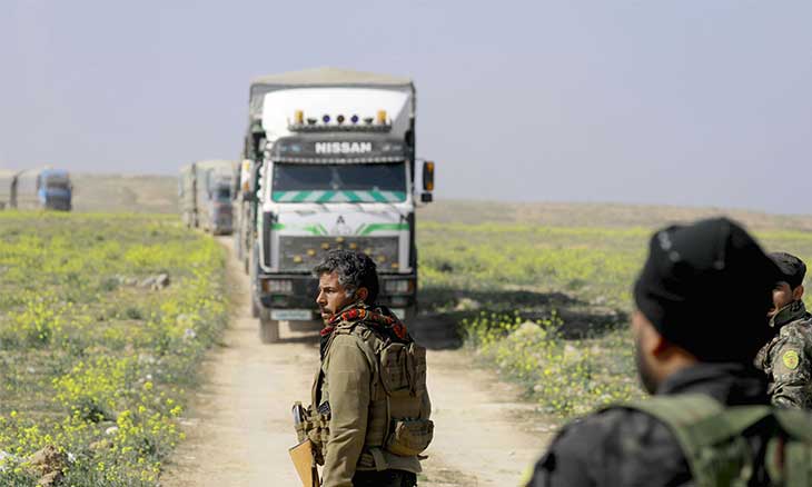 وحسب المحلاوي، «الشاحنات العشر المحملة بعناصر داعش وعائلاتهم، غالبيتهم من العراقيين»، مبينا أن «قافلة الشاحنات كانت تحت حماية أمنية مشددة وتوجهت إلى قيادة عمليات الجزيرة والبادية».