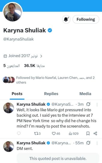 يذكر أن إدارة موقع إكس قامت، في وقت لاحق، بإزالة الحساب الأول الذي ينتحل شخصية شولياك، والذي يتضمن العلامة الزرقاء، فيما تم الإبقاء على الحساب الثاني والذي يضم فقط مئتي متابع، وهو ما يعتبر رقما متواضعا قياسا بآلاف المتابعين للحساب الأول.