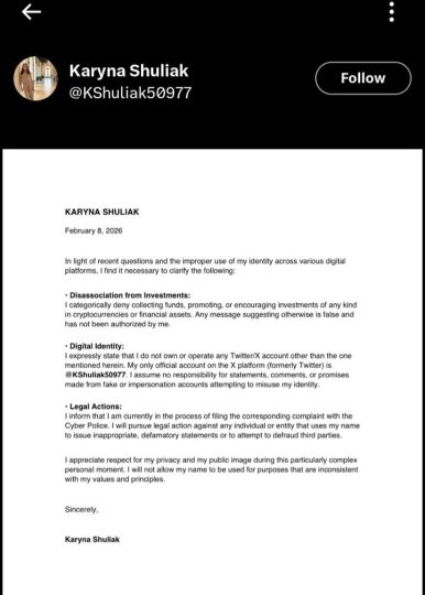 فيما نشر حساب مزعوم آخر لشولياك بيانا يؤكد أنه “الحساب الوحيد” الرسمي لشولياك، مؤكدا أن الحساب الأول مزيف، ويستخدم الخداع لجني المال.