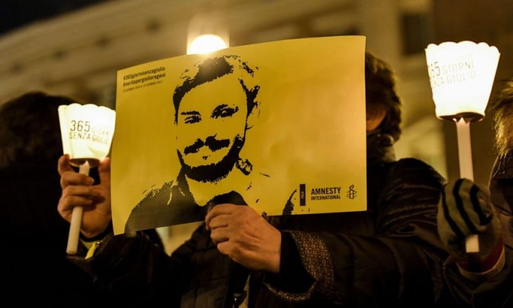 وعثر على جثة ريجيني ملقاة على الطريق السريع في شباط/ فبراير 2016 بعد تسعة أيام من اختفائه. وظهرت على جسده علامات التعذيب وكان مشوها بدرجة لم تتعرف والدته عليه إلا من طرف أنفه.