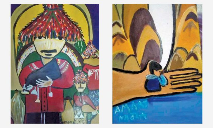 إن المبدعة تصنع أشكالا فنية متنوعة، تصيغها في ألوان مختلفة، وتردفها برسومات لتنسج منها المادة التعبيرية، ثم تعمد إلى روابط علائقية تكثف بها الفضاء لتتجلى بين الشخوصات والعلامات والألوان، وتعمد من خلال عملية البناء إلى إنتاج توليف بين مختلف العناصر المكونة لأعمالها بتدرجات لونية تسد كل منافذ الفضاء، تنسجها وفق بنائها بقدر ما تحمله تقنياتها من متغيرات، تجعل من المجال اللوني المترابط مع جوهر الشكل بناء فنيا منظما في تواشج عميقة الدلالات، قادرة على تغيير المنحى التعبيري والانزياح به نحو تعددية القراءة. فهي تبلور العملية الإبداعية، وفق خاصيات انطباعية وتأملية تتماشى مع نسق الأشكال التي توظفها بموتيفات شكلية دالة على مضامين ومعانٍ محددة، تعيد صياغتها بوهج لوني وبتحريف جزئي، ما يمنح أعمالها حيزا من الخيال، وهي خاصيات تشكيلية في تجربتها التي ترسي من خلالها هذا الأسلوب على هذا النحو الذي يحيل إلى التعبير العميق عما هو مخزون في دواخلها، في حين تكشف أعمالها عن عُدّة من المعاني والدلالات.