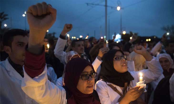الرباط –« القدس العربي»: على إيقاع اعتصام آلاف الأساتذة أمام مقر وزارة التربية الوطنية في المغرب، عقد وزير التعليم اجتماعاً مع النقابات الأكثر تمثيلية في قطاع التعليم بناء على طلب لقاء صدر من الهيئات النقابية، ليكون ملف أساتذة التعاقد أهم ملف على طاولة اللقاء بعد أن دخلت احتجاجات الأساتذة أسبوعها السادس واستمرت حتى في أيام العطلة الدراسية بعدما أعلن الأساتذة عن برنامج احتجاجي بالعاصمة الرباط مدة ثلاثة أيام ابتداء من الإثنين إلى غاية اليوم الأربعاء للمطالبة بإدماجهم في الوظيفة العمومية. لقاء النقابات والوزارة شطر منه قالت مصادر نقابية إنه لتدارس ملف أساتذة التعاقد أمس الثلاثاء وشطر آخر سيتم تخصيصه غداً الخميس لتدارس الملفات العالقة الأخرى في قطاع التعليم.