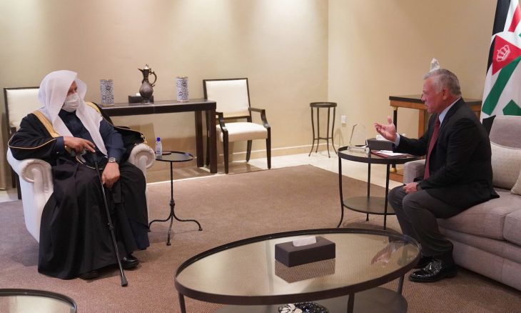 جاء خلال استقباله بالعاصمة عمان رئيس مجلس الشورى السعودي عبد الله بن محمد آل الشيخ، في إطار زيارة رسمية غير محددة المدة يجريها الأخير لعمان، وفق بيان للديوان الملكي.