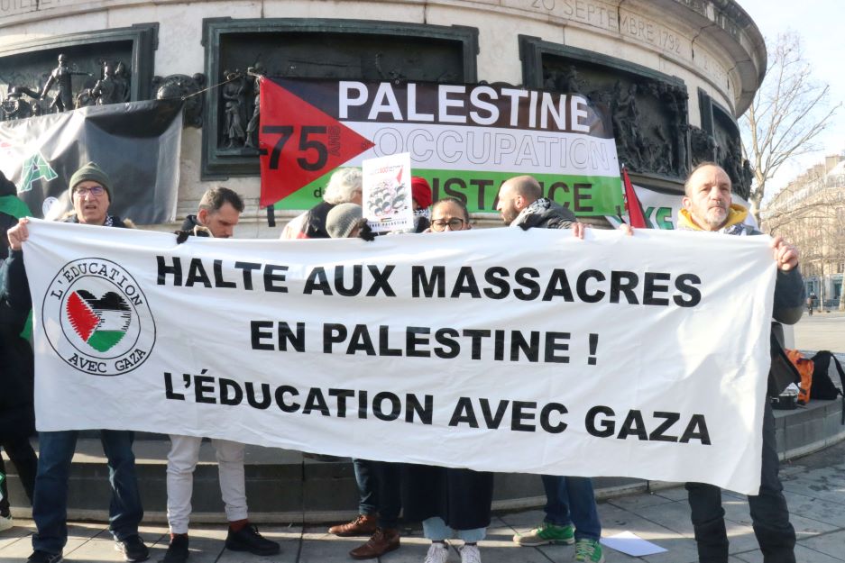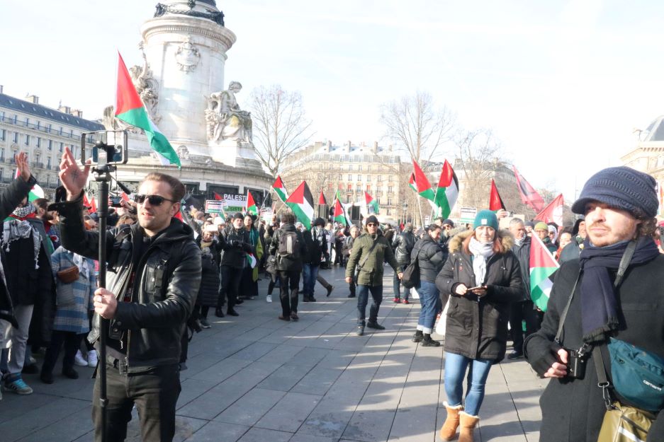 واجتمع المتظاهرون في ساحة الجمهورية بباريس رافعين الأعلام الفلسطينية، حيث دعوا إلى وقف فوري لإطلاق النار في غزة.