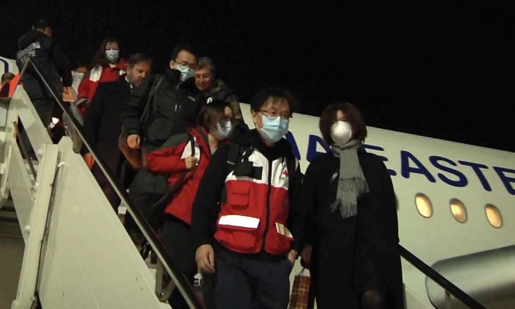في هذا الصدد، نشر القسم العربي لوكالة الأنباء الصينية، والصحافة الإيطالية، خبر وصول فريق طبي صيني الى روما ليلة الخميس، مكون من تسعة أطباء وخبراء ويحمل معه على طائرة خاصة كبيرة أطنانا من الإمدادات الطبية ومنها الكمامات ومعدات وآلات خاصة بمواجهة الفيروس.
