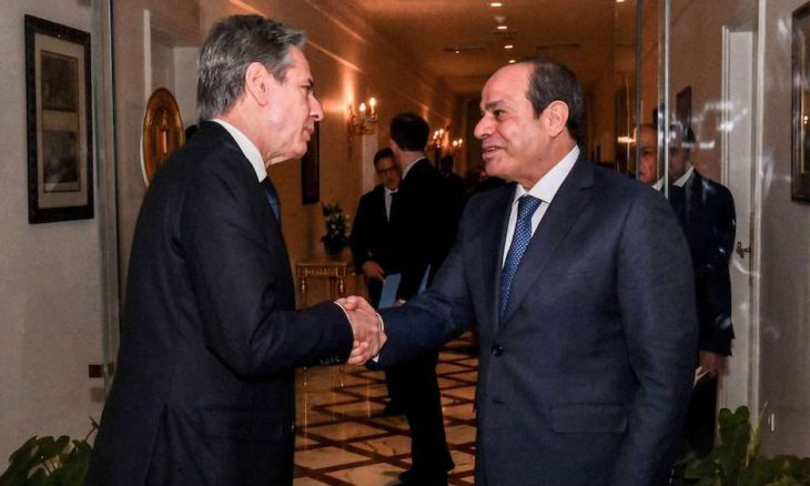 وكان الوزير الأمريكي وصل الى القاهرة قادما من إسرائيل. والتقى الرئيس المصري عبد الفتاح السيسي قبل أن يغادر عائدا الى الولايات المتحدة بعد جولة شملت تسع دول من بينها تركيا والسعودية. وفي كل محطات جولته دعا بلينكن الى العمل على عدم توسّع النزاع.
