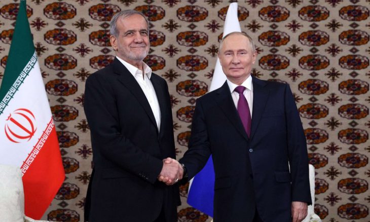 موسكو: أجرى الرئيس الروسي فلاديمير بوتين محادثات مع الرئيس الإيراني مسعود بزشكيان الجمعة في تركمانستان، حيث أشاد الزعيمان بتنامي العلاقات الاقتصادية بين البلدين، وتشابه وجهات النظر بشأن القضايا الدولية، وهو التفاهم الذي تتابعه الولايات المتحدة الأمريكية بقلق.