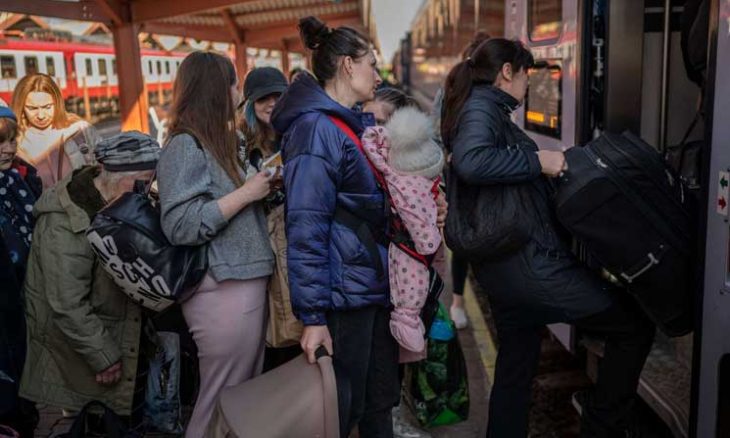 أوكرانيون تم إجلاؤهم على متن قطار في طريقهم إلى وارسو
