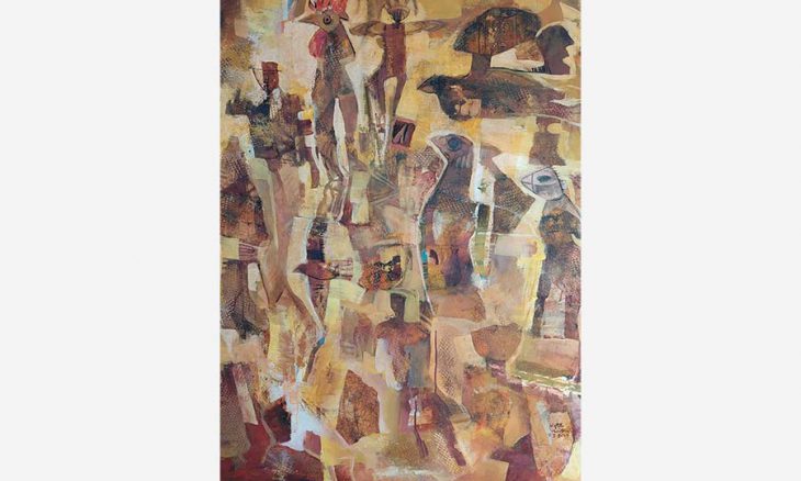 عوالم وتكوينات وطلاسم وسحريات مكي عمران لا تشبه بعضها بعضا، إلا أنها تعيش اللحظة الزمنية نفسها في ذهنه ومخيّاله، فهي حرة في سلوكها وطقوسها وفطريتها وفهمها للحياة، وتتخذ الشكل والمنطق والحياة التي تناسبها وتجد نشوتها وشغفها فيها، فلا قوة تقوض حياتها حتى فرشاة مكي عمران غدت مهادنة لها في الشكل واللون والفضاء والحجم، الذي تبغيه داخل إطار اللوحة، فهذا الانسجام والتوّحد بين الفنان، وهو في حالة انصهار تام مع مخلوقاته، وأحيانا قد تغدو مخلقة لأفكاره بصفته فنانا يعيش حالة اللاوعي والهذيان ليمارس طقوسه في الخلق والصنع، وكتابة نصوصه على خاماته في رحلته التي أقصت كل المرويات واليقينيات والتابوهات، لتتحرى بعقلانية وتبحث وتحقق في الأصول والجذور وتلغي قوانين الجاذبية، محلقة في هذا العالم الفسيح، وتقرأ بدهشة ما تركه السلف من قصص وحكايات وأثر وثقافات.