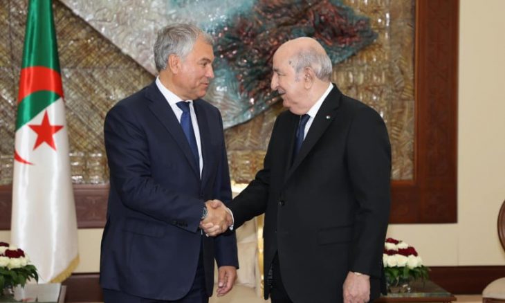الجزائر: استقبل الرئيس الجزائري عبد المجيد تبون، الإثنين، رئيس مجلس الدوما الروسي فولودين فياتشيسلاف فيكتوروفيتش، في زيارة غير معلنة للبلاد.