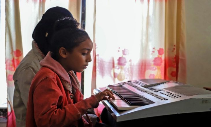 وتقول الطفلة “أحب مادة الموسيقى”، مضيفة “في الأوقات التي أكون فيها غير مرتاحة، أعزف الموسيقى”.