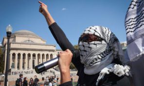 ويردّد الاطفال عبارة “هذا وجهي، هذا انفي” بالانكليزية على وقع الموسيقى، ويغني آخرون أغنية عنوانها “العلم سلاح”.