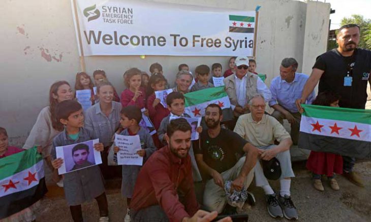 زار جو ويلسون وفيكتوريا سبارتز ودين فيليبس أحد مستشفيات مدينة أعزاز (محافظة حلب) آتين من تركيا عبر معبر باب السلامة الحدودي، حيث تم استقبالهم بلافتة كُتب عليها “مرحبا بكم في سوريا الحرة”، محاطة بأعلام الثورة السورية.