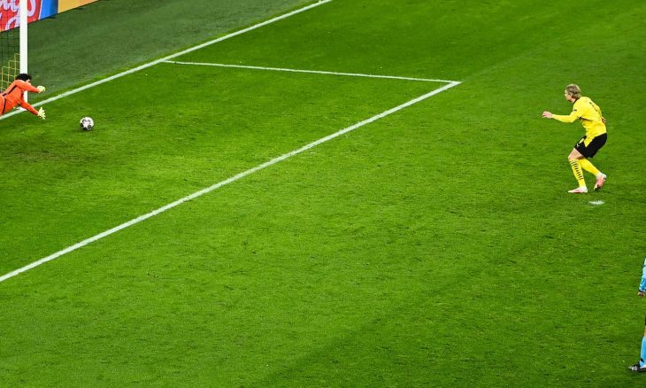 ووصل المهاجم النرويجي إلى هدفه 20 في 14 مباراة في دوري الأبطال والعاشر في المسابقة هذا الموسم من ركلة جزاء مثيرة للجدل في الدقيقة 54 بعدما منح فريقه التقدم من تمريرة ماركو رويس في الشوط الأول عكس مجريات اللعب.