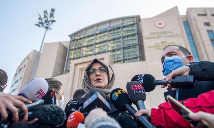 خديجة جنكيز تتحدث للإعلام بعد جلسة في إطار محاكمة 26 مسؤولا سعوديا غيابيا بشأن مقتل خاشقجي