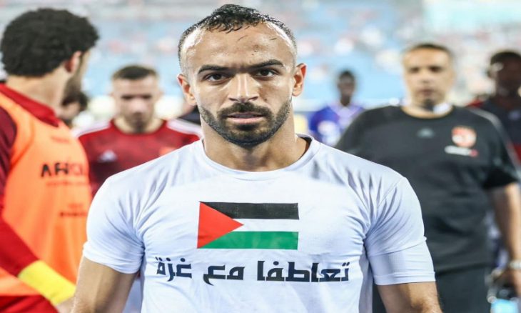 وقال “قفشة” بعد مباراة الأهلي وسيراميكا كليوباترا في الدوري المصري، والتي أقيمت الأربعاء، وسجل فيها أيضا هدف الفوز في الوقت بدل الضائع: “قميص مباراة القرن أقل ما يمكن تقديمه للشعب الفلسطيني”.