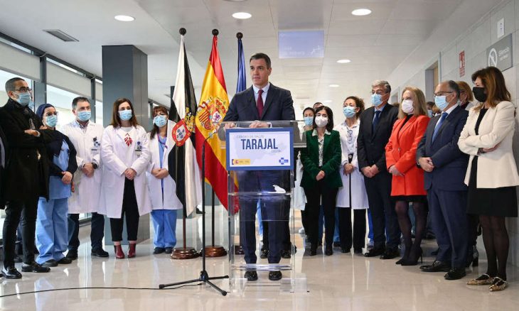 رئيس الوزراء الإسباني بيدرو سانشيز يتحدث خلال افتتاح مركز صحي في سبتة