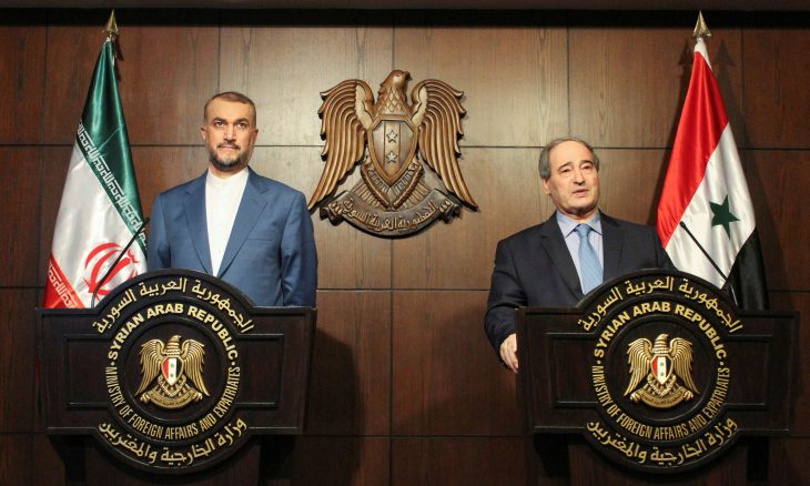 عبد اللهيان في مؤتمر صحافي مع نظيره السوري فيصل مقداد بدمشق