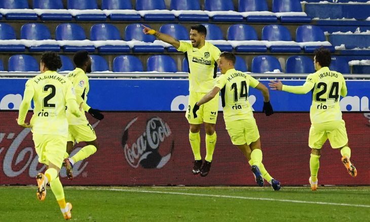 وكان أتلتيكو في طريقه للسقوط في فخ التعادل بفضل هدف من النيران الصديقة ولكن مهاجمه الأوروغوياني لويس سواريز واصل تألقه وممارسة هوايته في هز الشباك ليقود الفريق إلى الفوز في الوقت بدل الضائع من المباراة وصدارة جدول المسابقة.