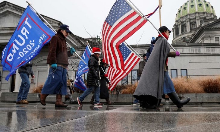 وتصدى عناصر من حركة “حياة السود مهمة” الناشطة في المجتمع الأمريكي الإفريقي، لمؤيدي ترامب، لمنعهم من رفع اللافتة في الميدان.