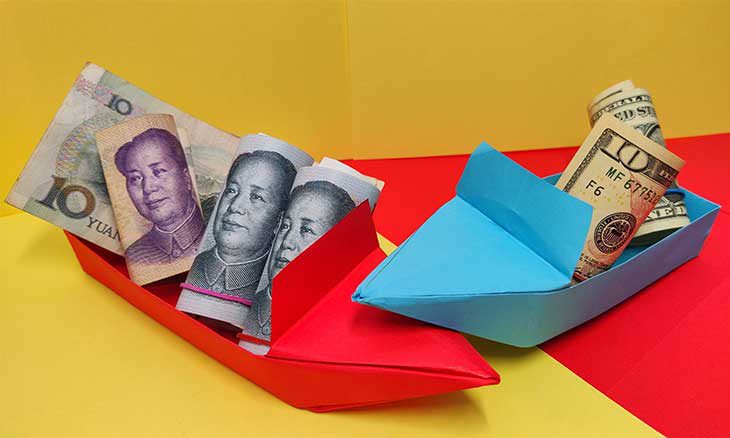 أما البعد الثالث لسياسة التطوير الصيني فيتمثل بالسعي لتقليص الاعتماد على الدولار الأمريكي في معاملاتها التجارية العالمية، وتسعى لتطوير نظام مالي عالمي أكثر مرونة وأقل اعتمادا على إرادة أمريكا وسياستها. وليس جديدا القول أن أمريكا اعتمدت على الدولار لبسط نفوذها العالمي من خلال تحويلات «سويفت» ونظام «آيبان» وما يصاحبها من تشريعات توفر لأمريكا مجالا واسعا للهيمنة على التجارة الدولية. وقد طوّرت نظاما للدفع النقدي المصرفي للتعامل مع 185 دولة. ولديها اتفاقات مع 40 دولة للتعامل بالعملات المحلية. فهي لا تسعى لاستبدال الدولار بشكل كامل ولكنها أنشأت نظاما يحافظ على محورية الدولار في التعامل مدعوما بالعملات الأخرى. إذ لم تكن مساعيها لاستحداث عملة بديلة للدولار ضمن منظمة «بريكس» ناجحة حتى الآن.