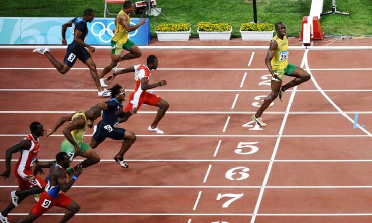 وفي صورة التقطها مصور وكالة فرانس برس نيكولا أسفوري، يظهر بولت وهو يجتاز خط الوصول في سباق 100م ضمن ألعاب بكين 2008 الأولمبية، حيث حقق رقما خارقا في ملعب “عش الطير” بلغ 9,69 ثوان، محطما رقمه القياسي العالمي.