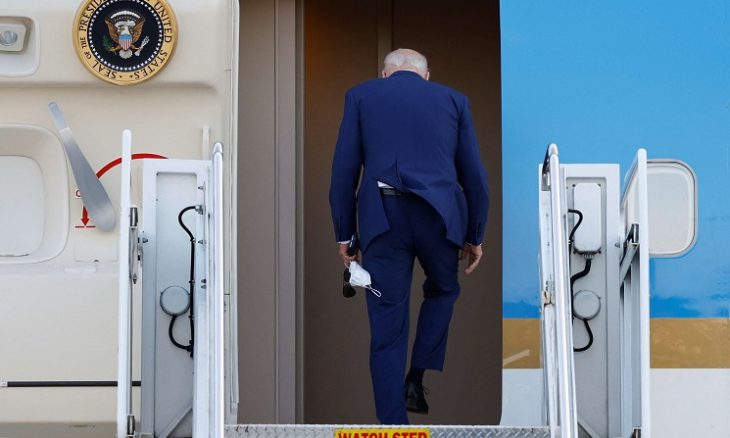 الرئيس الأمريكي مغادراً قاعدة جوية في ضواحي طوكيو