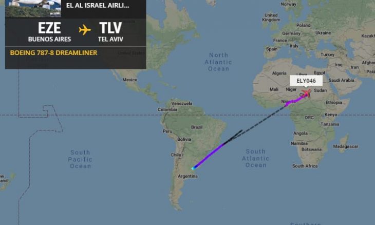 وأوضح اران  ان الطائرة كانت قادمة من الارجنتين الى اسرائيل.، وانها حلقت فوق اجواء نيجيريا وتشاد .