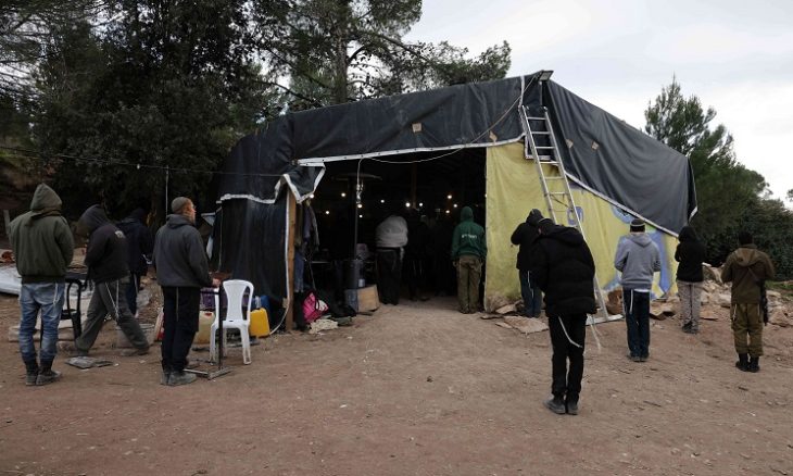 مستوطنون يصلون في مستوطنة حوميش
