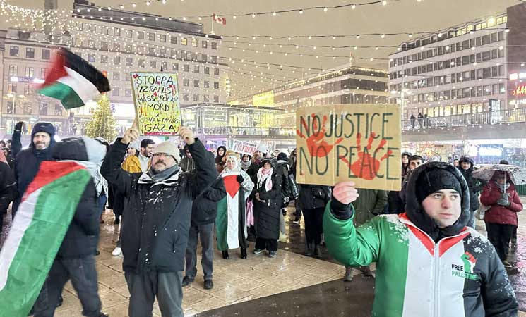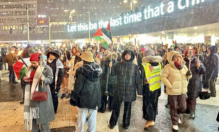 ستوكهولم: ألغى مئات الأشخاص الاحتفال بليلة رأس السنة في العاصمة السويدية ستوكهولم تضامنا مع شعب غزة ونظموا مظاهرة لدعم فلسطين.