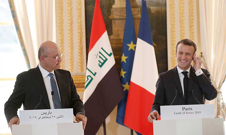 باريس ـ بغداد ـ «القدس العربي»: أعلن الرئيس الفرنسي إيمانويل ماكرون، اعتزام بلاده مواصلة دعم العراق مستقبلا في الحرب على تنظيم «الدولة الإسلامية». وفي أعقاب لقاء مع الرئيس العراقي برهم صالح في باريس أمس الاثنين، قال ماكرون: «يجب حماية هذا البلد من أزمات الشرق الأوسط، سواء في سوريا أو إيران».